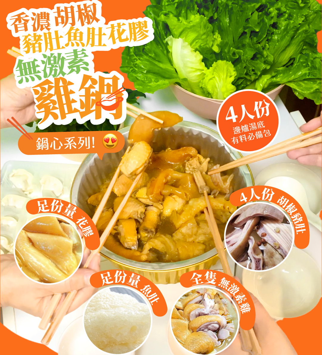 「香濃胡椒豬肚魚肚花膠無激素雞鍋」包括: